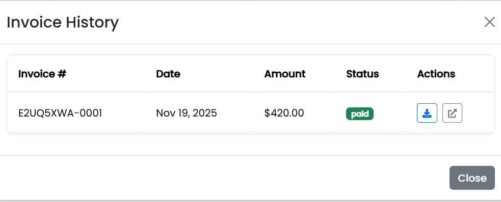 - Download – Downloads the invoice as a PDF file instantly.