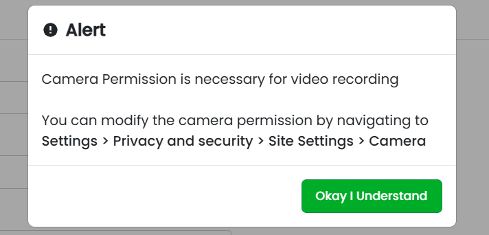 - If camera access is blocked, an alert appears: