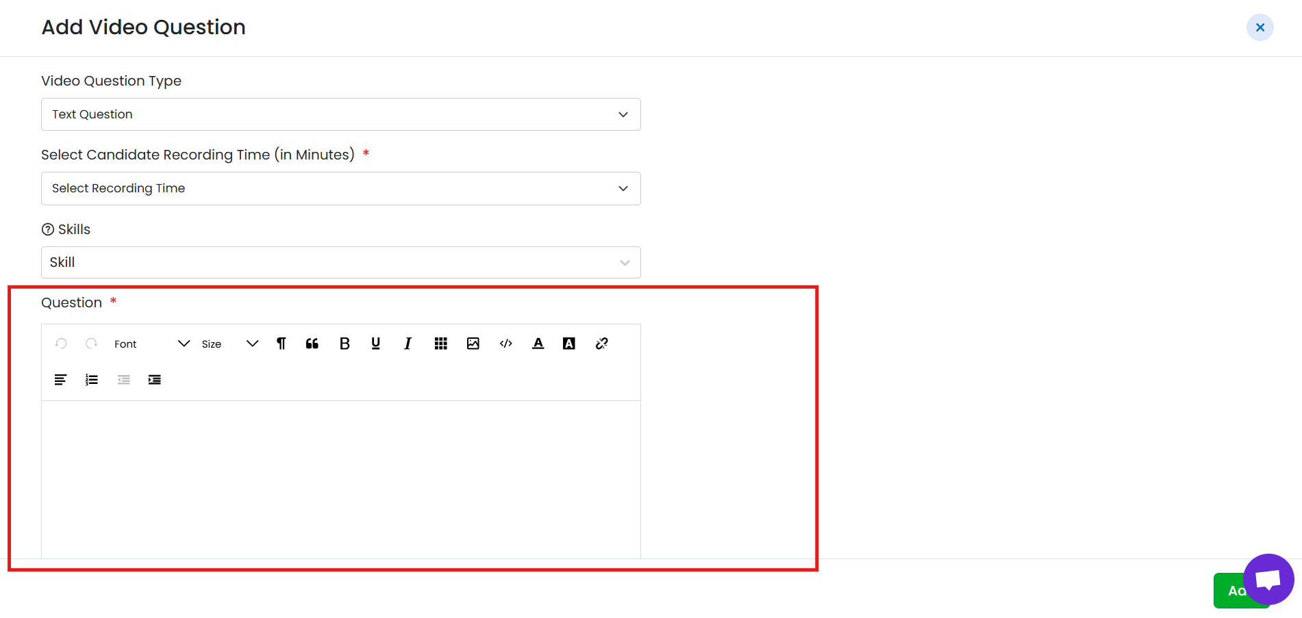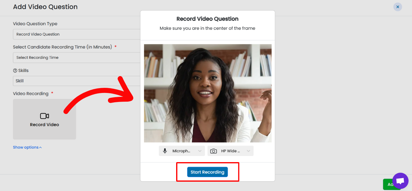 - After setting the question type, candidate recording time, and optional skills, click Save.