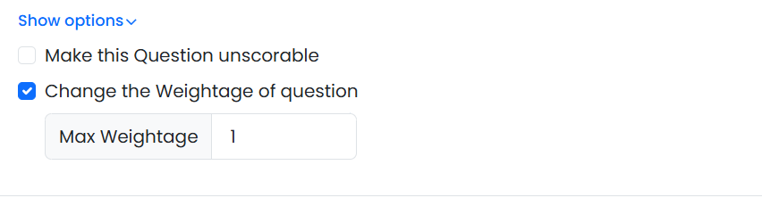 - Adjust the maximum weightage if you want this question to contribute more to the total assessment score.