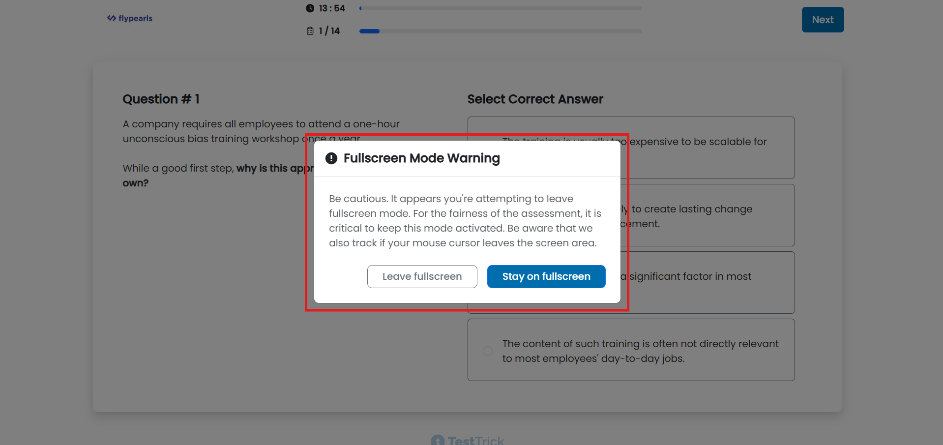 - When a candidate attempts to exit full screen:
