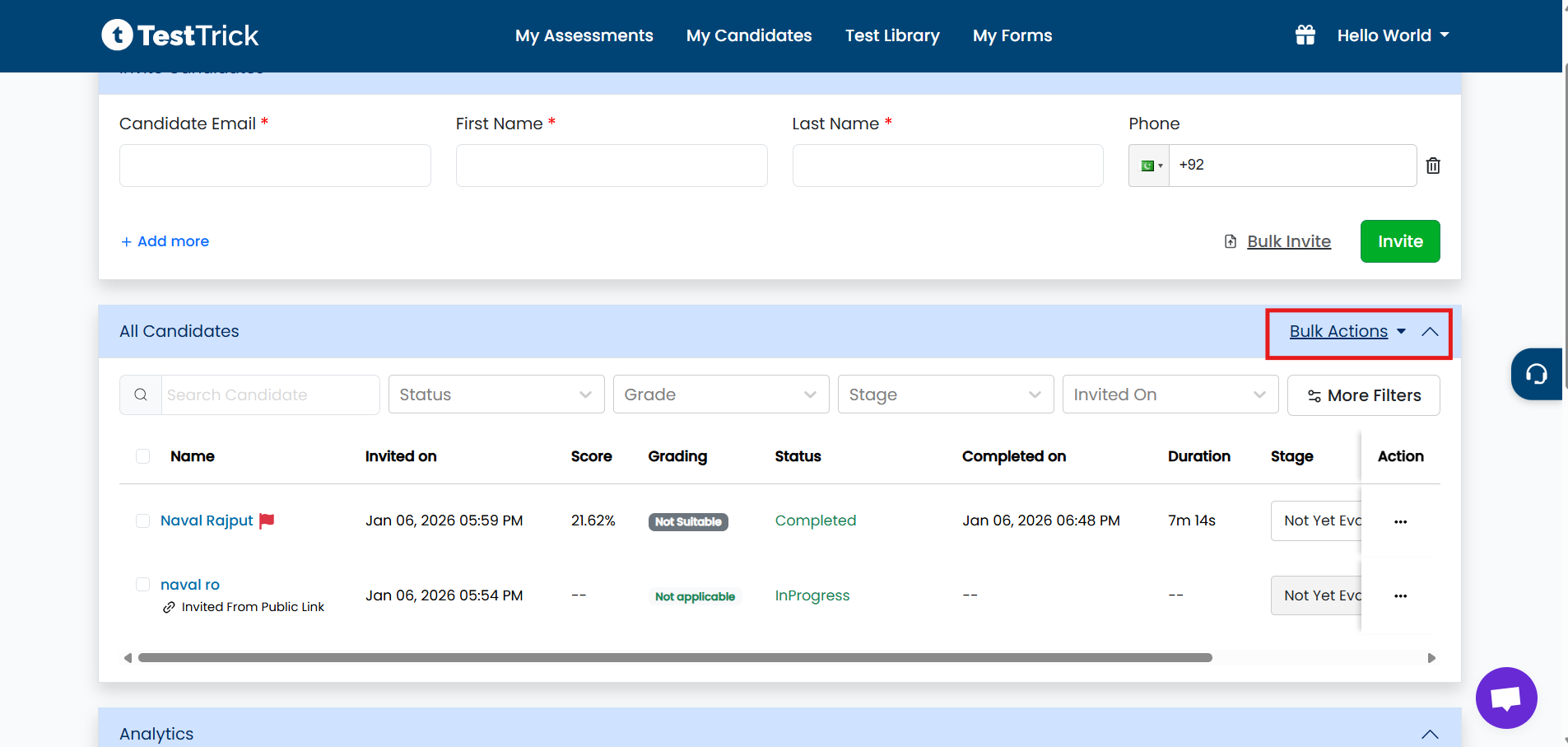 - Navigate to the All Candidates section to view the list of invited candidates.