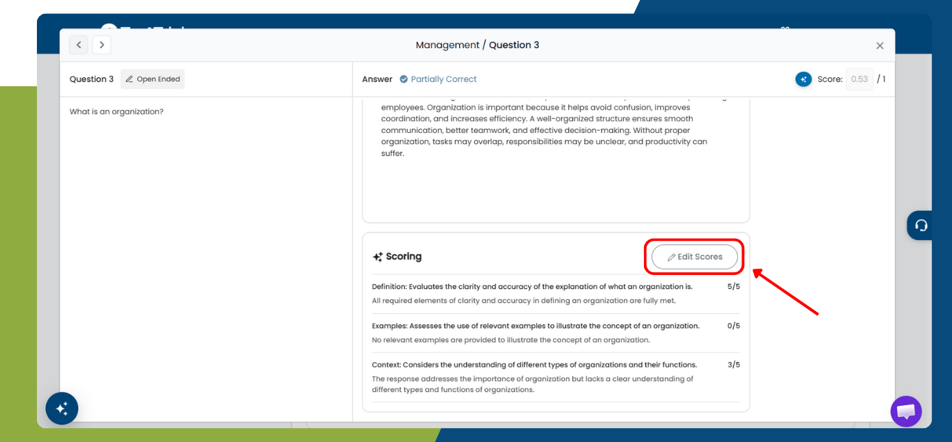If needed, you can manually adjust the score for a candidate. Any changes apply only to that candidate’s response.